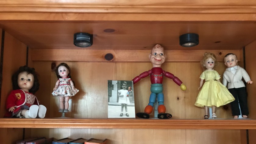 Sometimes I wonder why I save some stuff. Dennis and I have done a huge downsizing of “stuff,” but there are a few things of which I can’t seem to let go, namely my dolls. I have five dolls from my childhood that are near and dear to me. It made me start thinking about the playing I did as a child. How much of who we are is acted out in our playing as a child?