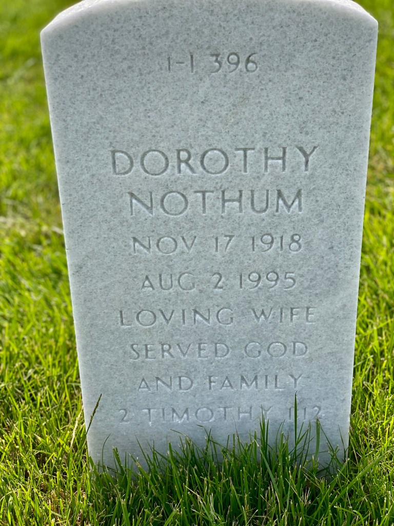 We had looked up my parents’ grave number online, and Dennis thought he read section H. Fortunately, section H is next to section I—glad to know the military knows their alphabet. After wondering around the wrong section for a while, we looked it up again, and noted we were in the wrong section. Dennis headed out ahead of me to find the correct grave.