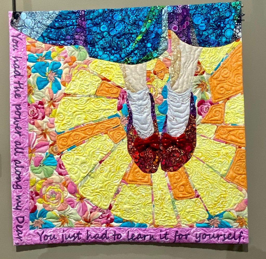 Monday morning we headed out for our site seeing.  I don’t even know how to explain the National Quilt Museum.  I thought I would see quilts made throughout history.  Instead, this was more of an art museum with very creative quilts.  That’s where I learned there really are no rules or quilting police to say how to make a quilt.  Some of these quilts had only three borders.  One had fringe on one border, and none anywhere else.  Most of these quilts were made by artists who happen to use fabric as their medium.  It was amazing and inspirational.  Not that I will ever have the talent to make quilt look like a painting, but I learned here that anything goes.