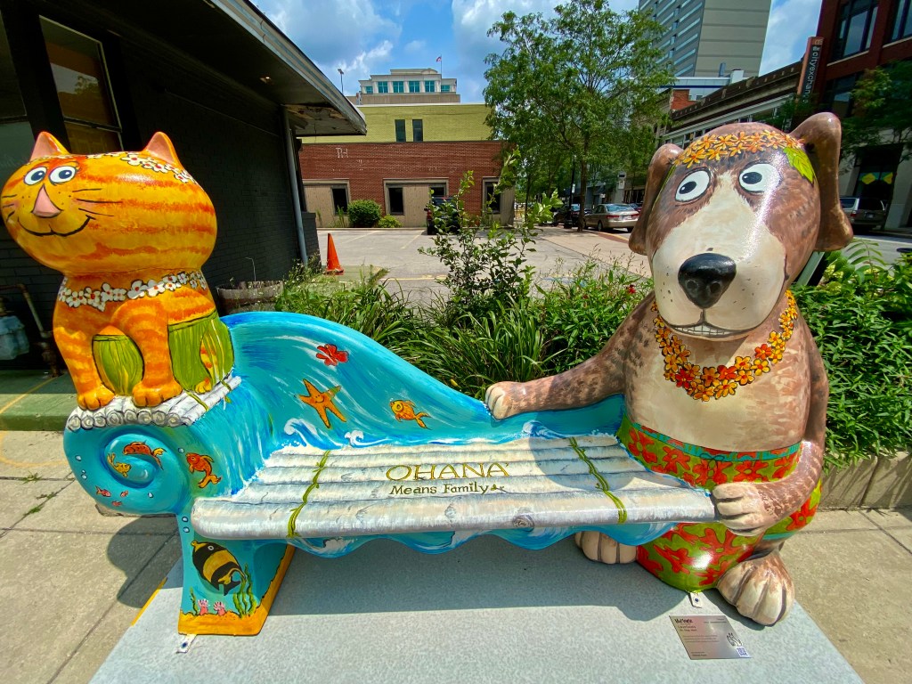 I love their cat/dog benches throughout the downtown area–the dogs and cats are painted differently on each bench.
