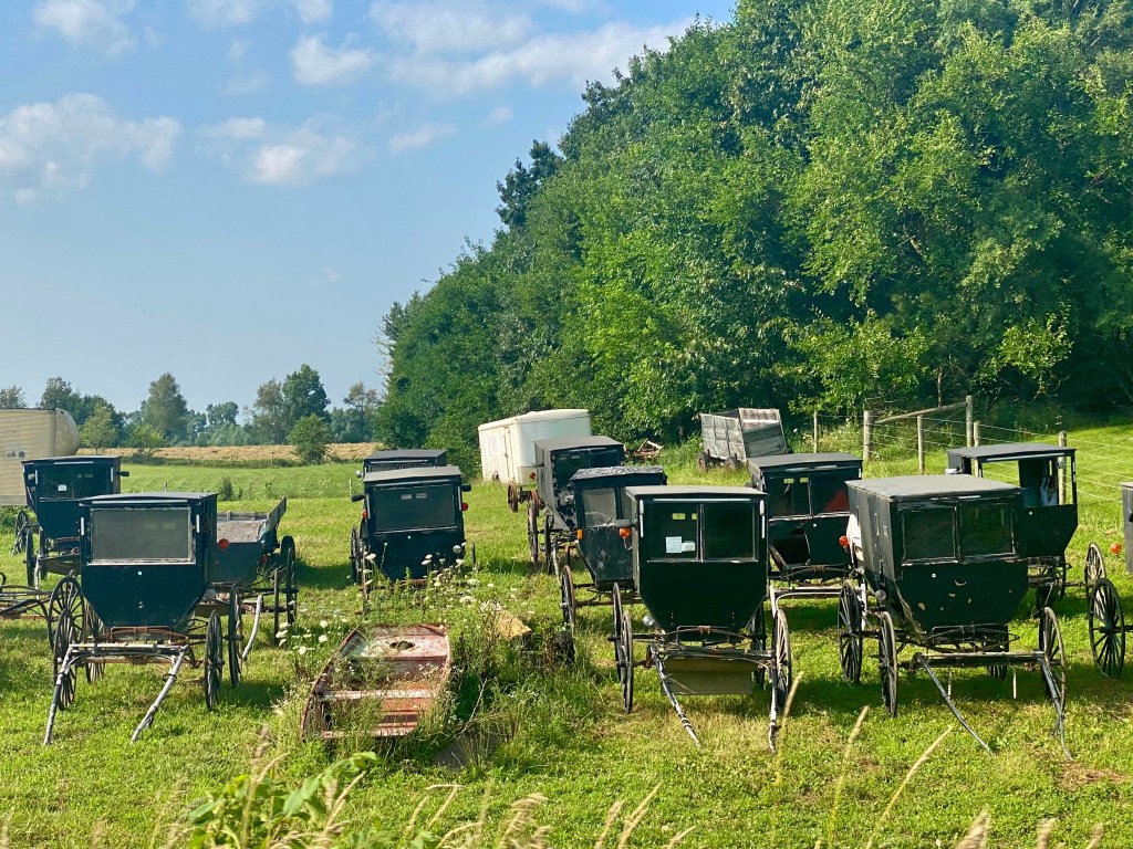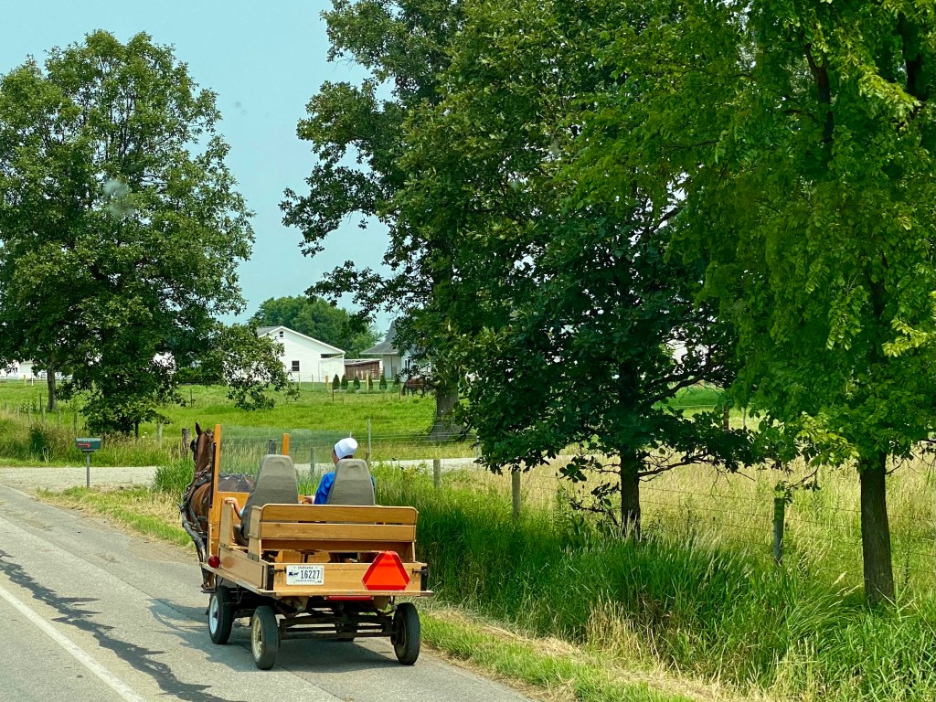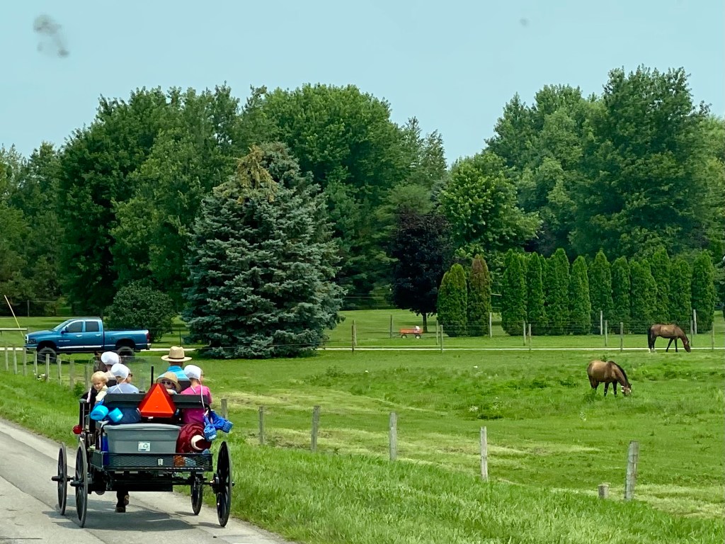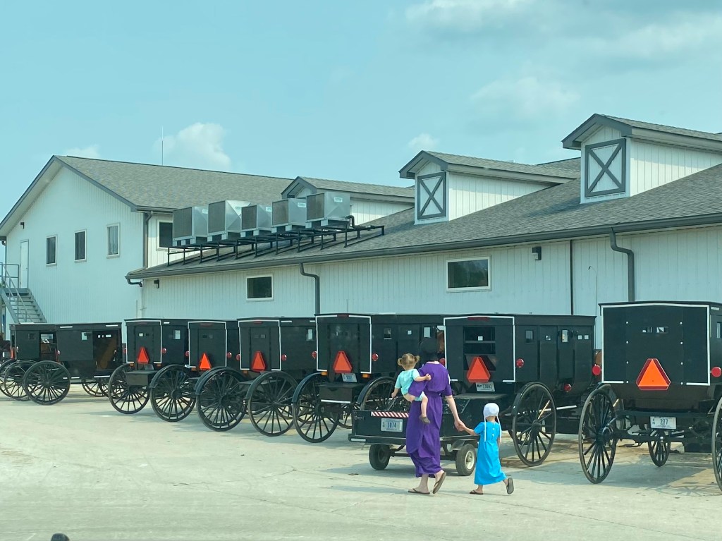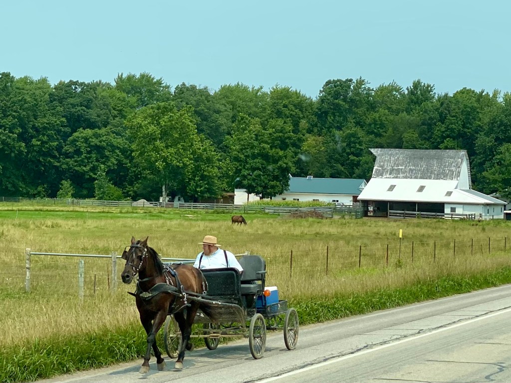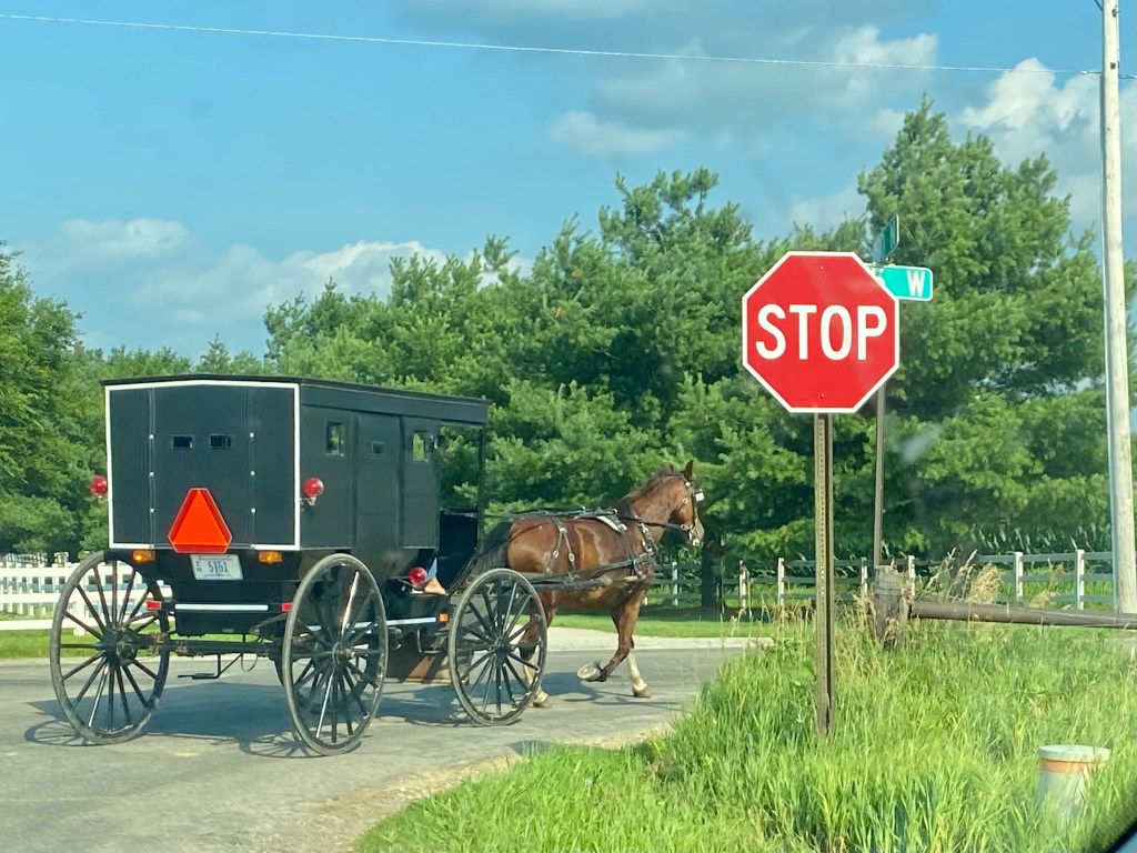 In Shipshewana, we saw more horse and buggies than in Lancaster.  The shoulders on the roads are wide so they drive there.  It is also interesting to note, that these buggies vary in style, just like our cars do — they just don’t get paint choices!
