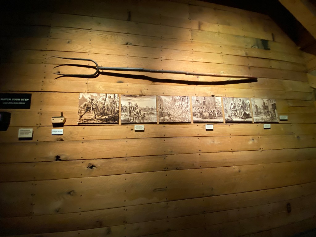 Monday, we drove about 60 miles north to Shipshewana, Indiana.  We stayed there for two days.  We were, once again, in Amish country.  One of the most interesting places we visited was the Menno-Hof Museum.  It is a beautiful home/barn that the Amish and Mennonites constructed in just five days.  This museum gives the history of the Anabaptists (Mennonite and Amish) starting back in 16th century Europe, where they were persecuted, tortured and killed because they refused to join a religion that was run by the government.  Many of them fled in the 1800’s to the United States for the ability to practice their beliefs without government interference.  The museum explains the similarities and differences between the Amish, Hutterites, and Mennonites.  It gives one a new perspective and respect for these believers.