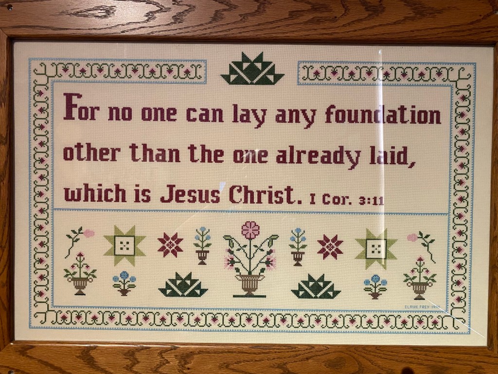I love this sampler that is displayed at the museum. These folks are devout Christ followers. They may practice differently than some of us, but what they do is based on their faith in Christ.