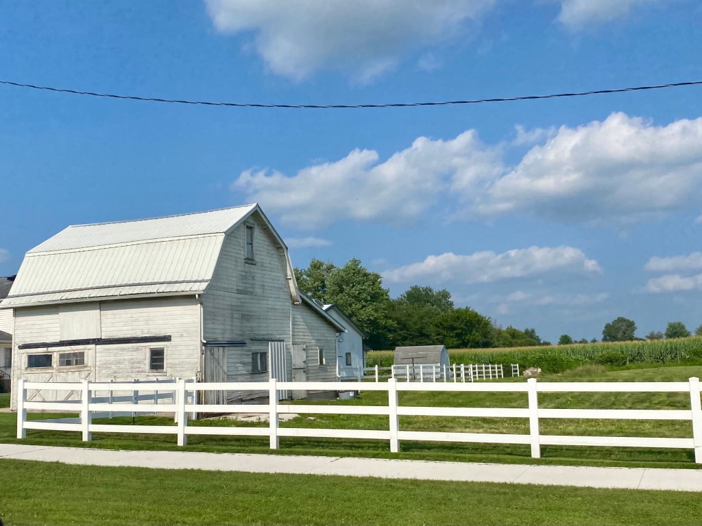 We spent the 2nd day at the Shipshewana Flea Market.  I am not a flea market person, but a day there was fun.  The flea market is next to our RV campground.  We walked around and looked at things that struck our fancy.  I actually found a couple little things I had wished I added to the RV, so it was a productive day.  It was a good, relaxing day to enjoy area.  After dinner our last night, we drove around the area to see the farms.  It was a great way to end our visit in Indiana.