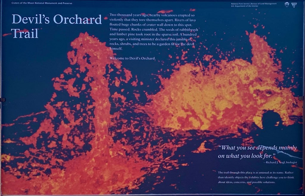 The first area we visited was Devil’s Orchard. It’s 1/2 mile area with a paved loop through the area. The large rocks are actually Cinder Crags that broke off from the cinder cone eruptions. They are also called Monoliths.