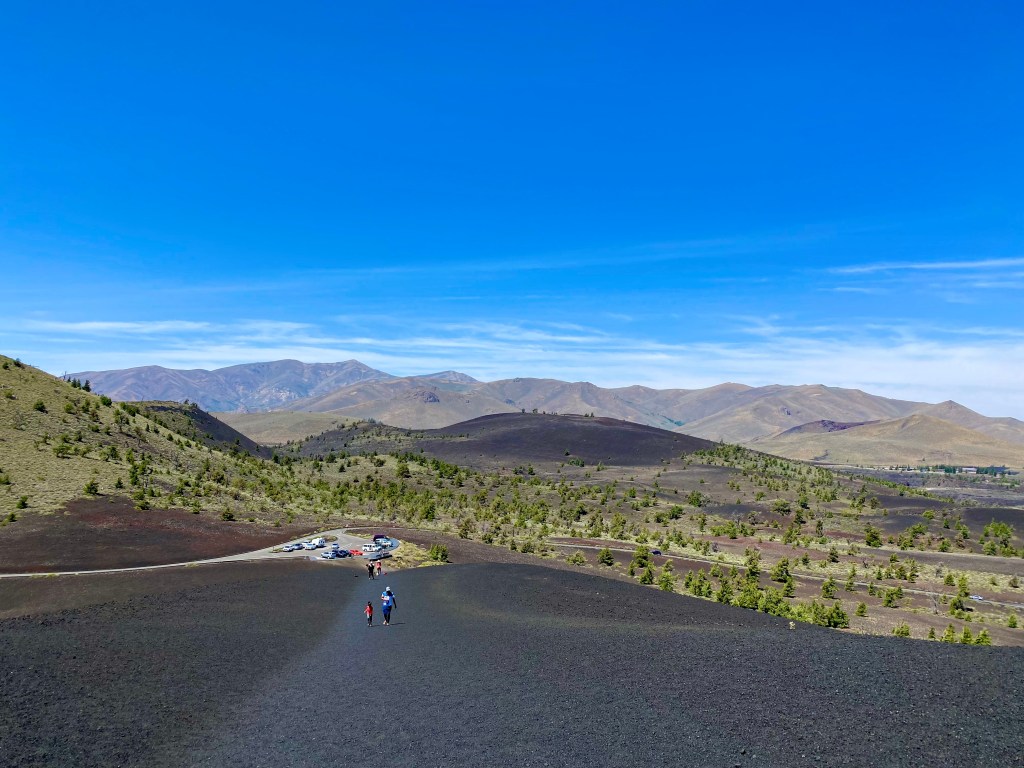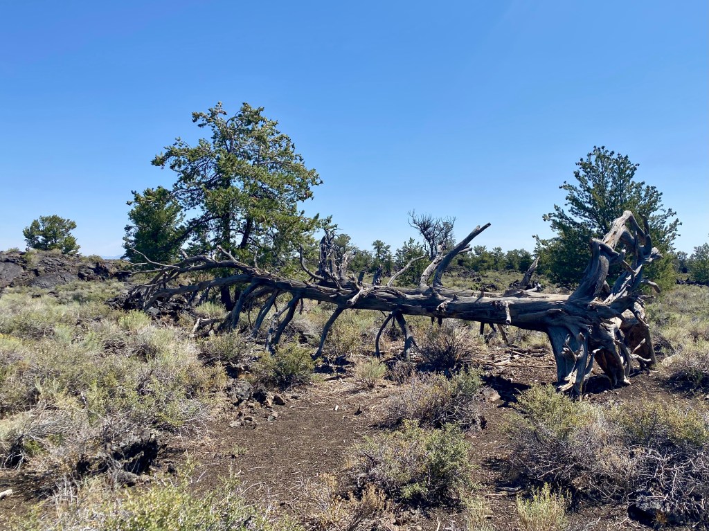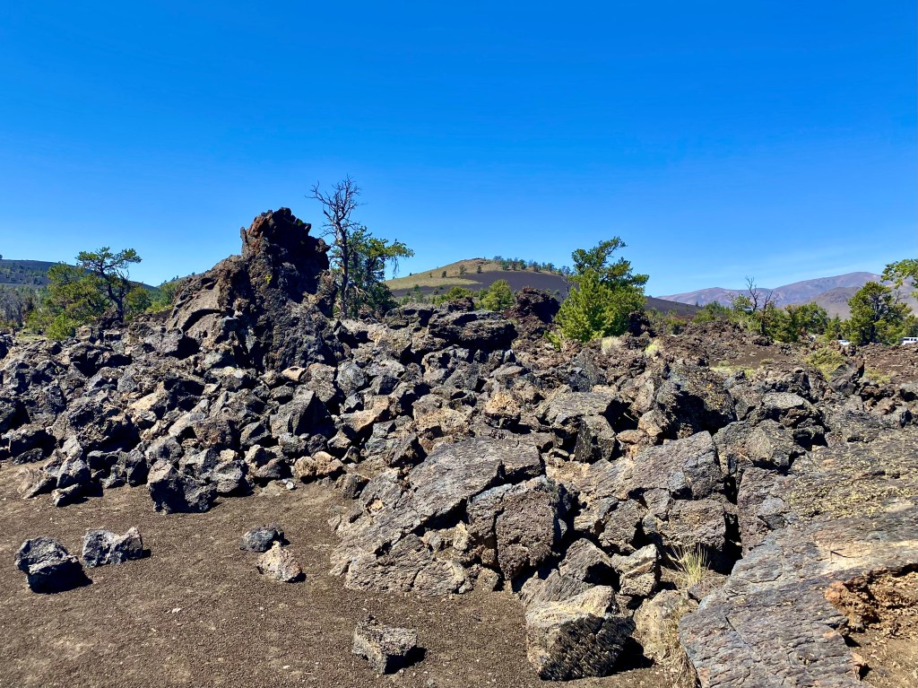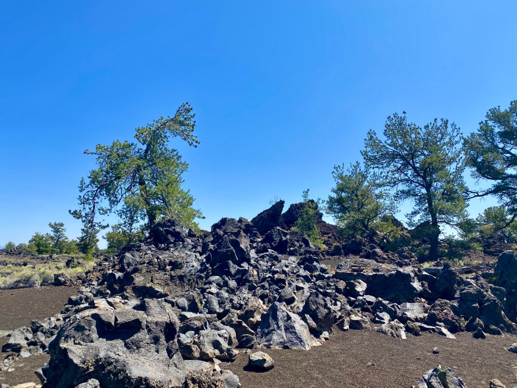 The second area we went to was the Inferno Cone. It is a mountain of cinders thrown from the volcanic eruption. It’s a 200’ climb up. When you get to the top, there is a full 360 degree view of the preserve. The wind was wild up on top. The other interesting thing was on the way up, it was barren with one little plant trying to grow out of he cinders. At the top, there is actually a tree and foliage. My biggest surprise was when my phone rang up there, and I actually had a FaceTime call with my oldest granddaughter! That was a pleasant surprise. Her first question she asked was, “Where are you?” My answer, “On top of a volcano!” The air was also thin at the top. We were already at a high elevation, so it was nice to get the call, and give me time to catch my breath.