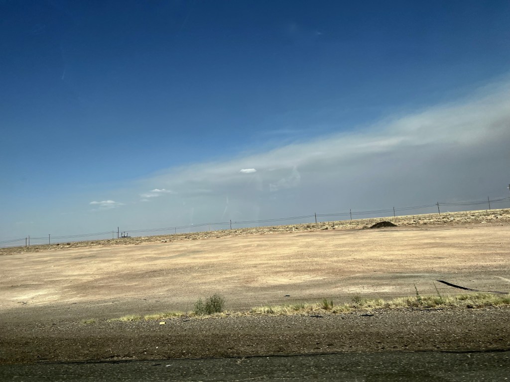 The best shot I could get as we turned around to go back north to the Grand Canyon. That is smoke in the sky.