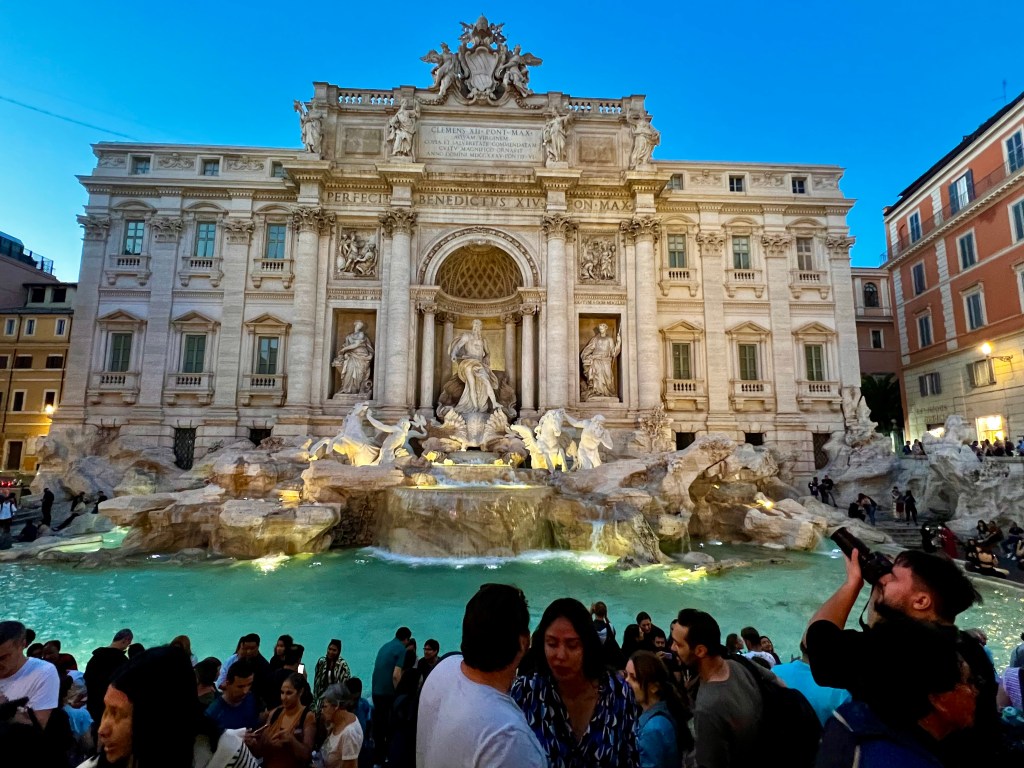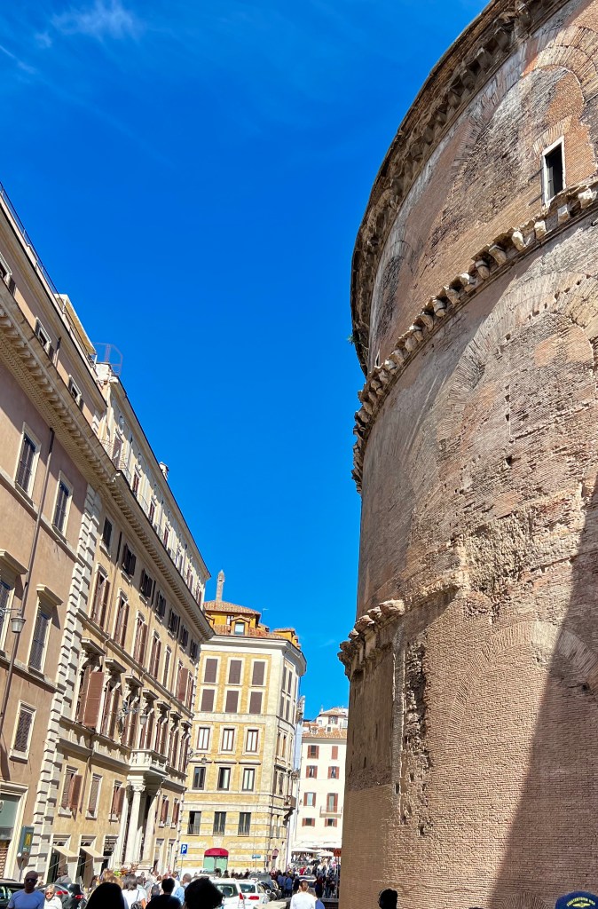 As we passed the Italian Parliament, we came to the Trivi Fountain and the Pantheon, which are right next to each other. The crowds were huge in the Piazza della Rotonda, where these two historic sites reside.