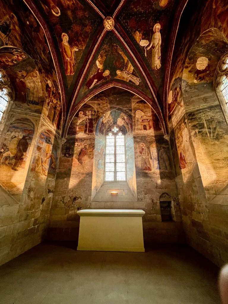 Although the palace remained under papal control for over 350 years afterward, it gradually deteriorated despite a restoration in 1516. When the French Revolution broke out in 1789 it was already in a bad condition. It became the scene of a massacre of counter-revolutionaries. The palace was subsequently taken over by the Napoleonic French state for use as a military barracks and prison. It was further damaged by the military occupation. The remaining interior woodwork was cleared away for use of the structure as a stables, the frescos were covered over and largely destroyed. The palace was vacated in 1906, when it became a national museum. I’m glad I found this information so I can appreciate what I saw that day!
