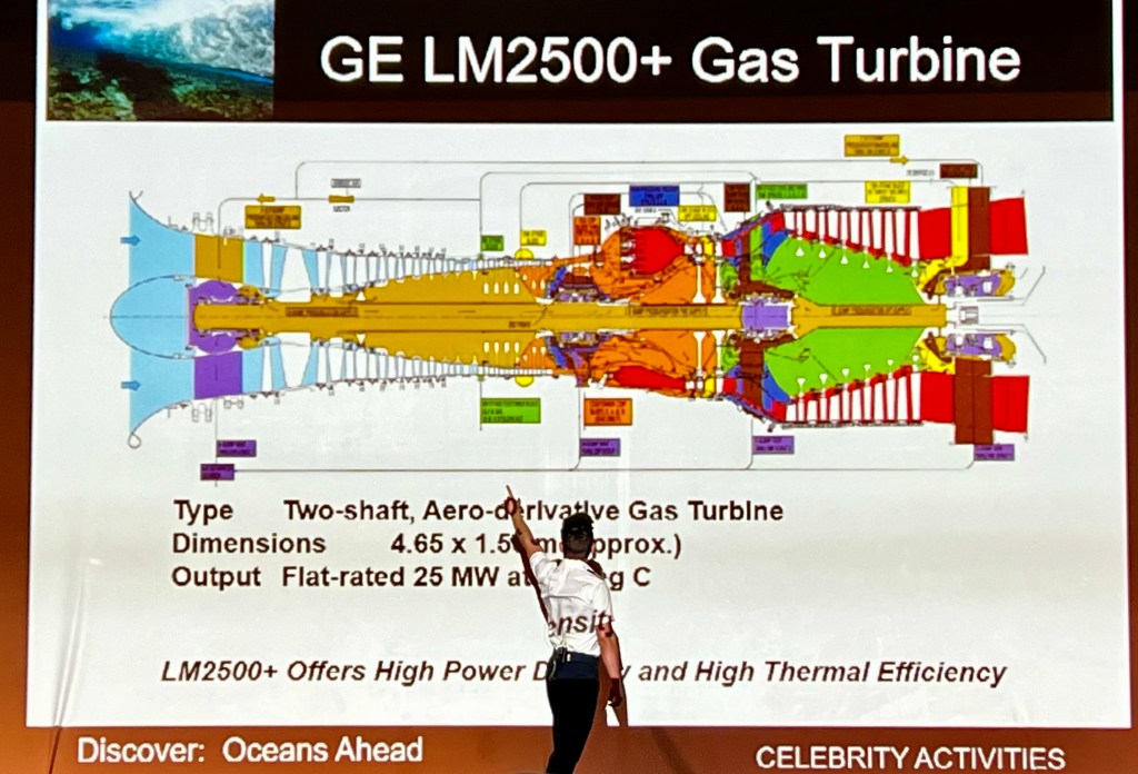 As we sailed across the Atlantic, one day there was a lecture on how the ship operates. I was really excited, so Dennis and I went to the theater for the presentation. It was very interesting to Dennis, who is a civil engineer by education. We learned how the ship physically operated.