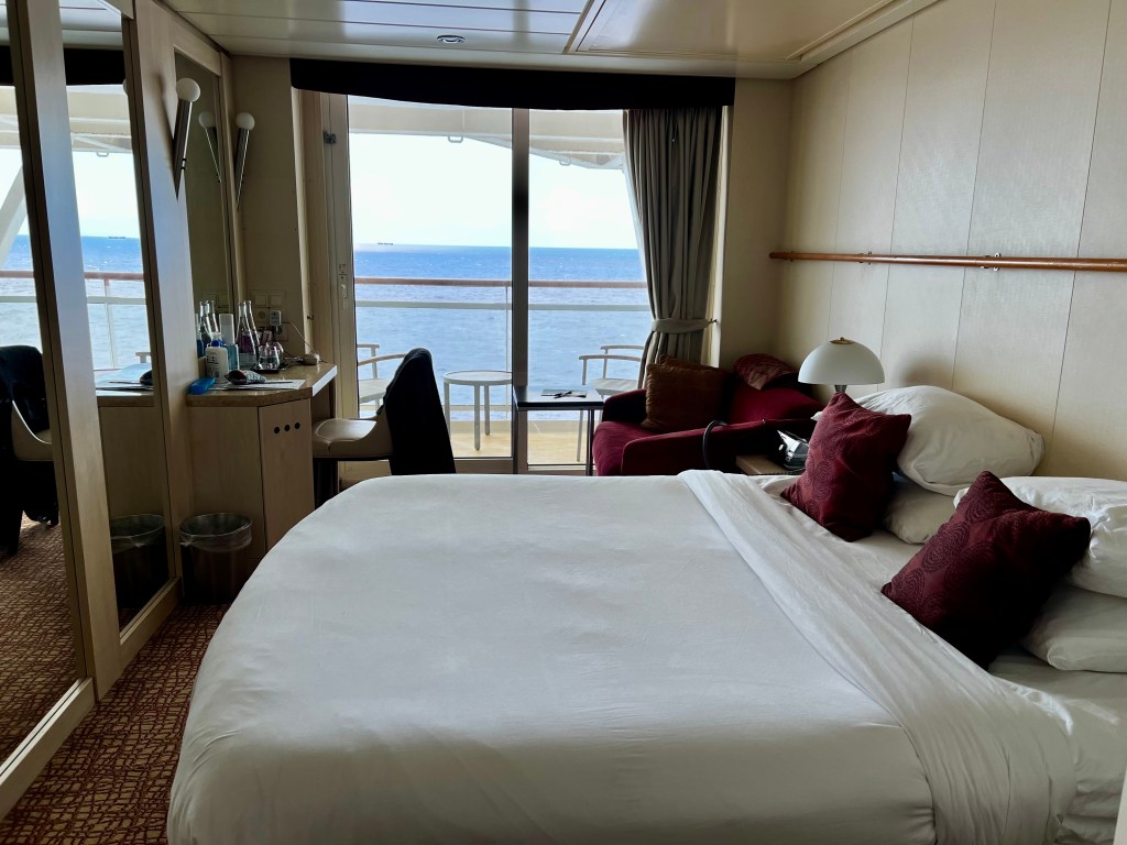Our trip across the Atlantic Ocean was peaceful. Once in a while we would see another ship off in the distance, but we pretty much were alone at sea. Our rooms were nice, and having a balcony to sit and enjoy the water was a plus. The meals (in my opinion) were mediocre in the buffet area, but the dining room provided great meals with great service by very accommodating wait staff.