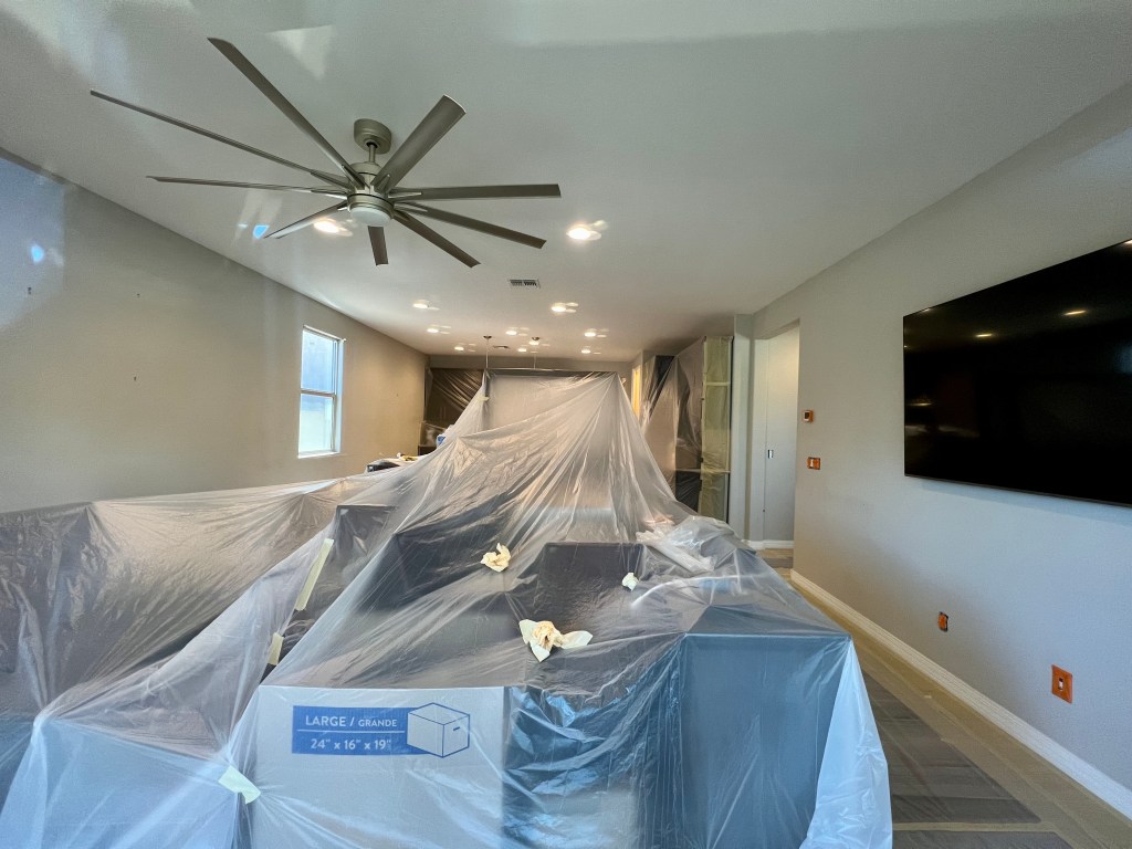 The painting company told us it would take three days to complete the job—actually, it took four. The first day was their prep day. All furniture was moved to the middle of the room. Everything, and I mean everything was covered and sealed in plastic.