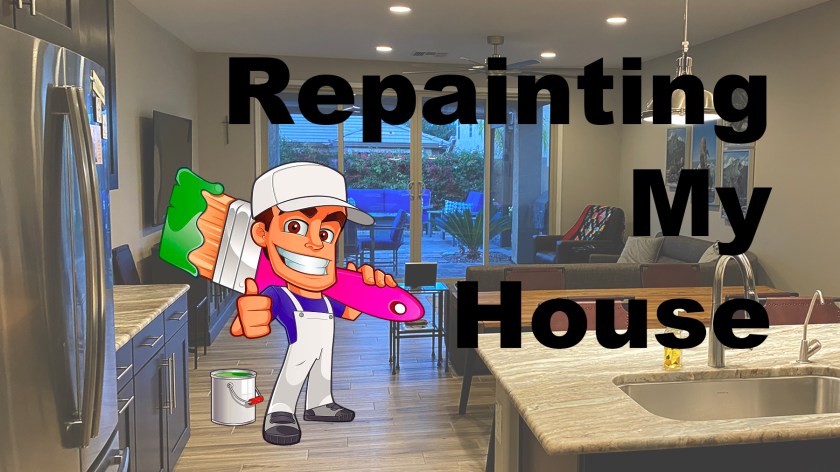 The last closet cleared was the bedroom closet because we had to lay all our hanging clothes on the bed. Things on shelves went into boxes in the garage. The kitchen pantry was quite a task. It was in need of rearranging anyway. We loaded everything into big boxes and set them on the the kitchen counters. Since we have a backsplash, the items didn’t block any wall needing painting. My sewing machines were put into their carriers, and put under the kitchen table. We did not trust any electronics to the garage, since Arizona heat is still over 100 degrees during the day.