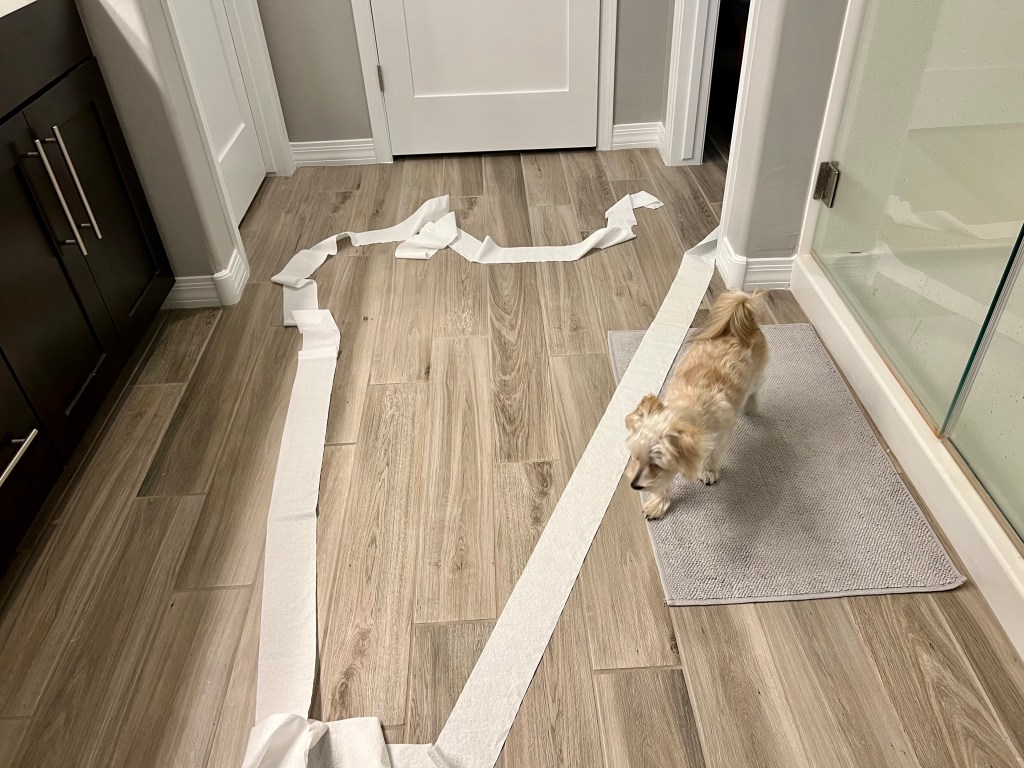 - He loves pulling the toilet paper roll as far as it can go before he decides to shred it into small unusable pieces. Therefore, all bathroom doors now remain closed.
