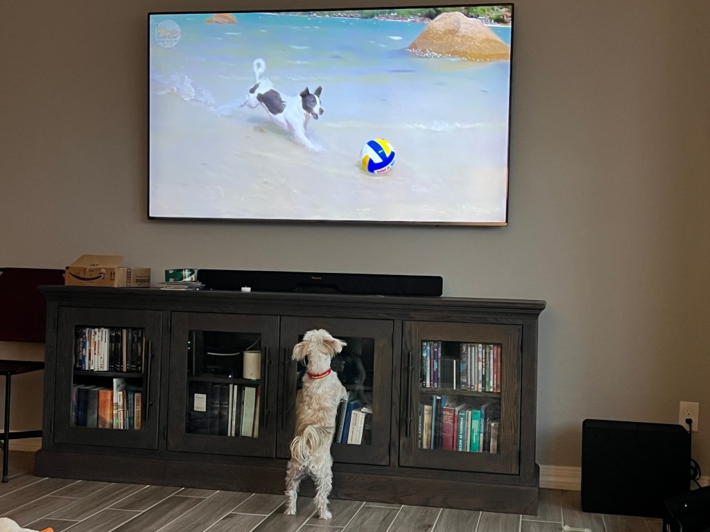 Charlie loves other dogs—at a distance. He loves watching dogs on television. I have found many YouTube channels with calming music and dogs playing. This is usually played for him if we leave home so he won’t be completely bored and try to eat the furniture. Up front and personal, Charlie is afraid of larger dogs. I’m not sure if its his safety that he worries about or the fact that this big dog just might be more in charge than this 14 pound fuzz ball. I really want him comfortable around other dogs, but he hasn’t had too many opportunities to see other pups.