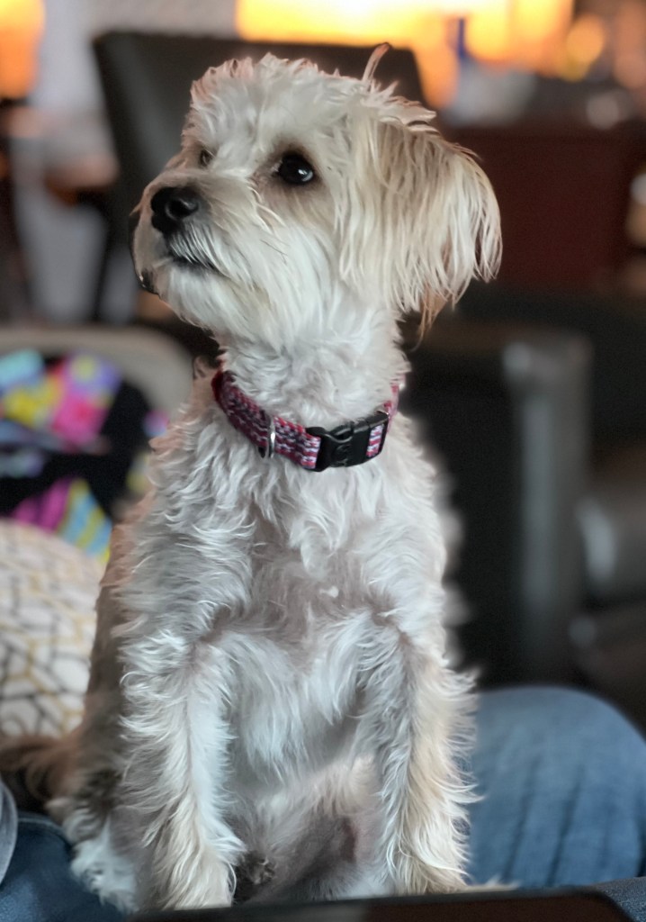 We are both new at this puppy thing. It is like having a baby all over again. He is needy—he needs to know he is loved at all times. And like a child, he knows the words he wants to know—treats. I now have to spell the word just like I did when my kids were toddlers. If I say the word out loud, no matter where in the house he is, within a split second he will be on my lap seeking out his favorite thing in life—a yummy treat.