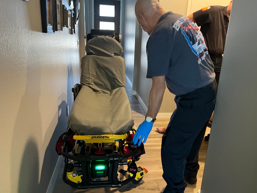 I called my local fire department—not 911, this was not life and death. I told them I needed them to transport him to the emergency room at our local hospital. I said, “No sirens, no lights, and no speeding. This is not a life and death emergency.” The man on the phone replied, “That decision is made by the captain.” Thankfully, the captain must have agreed with me—I just didn’t want all the neighbors gawking at a non-emergency.