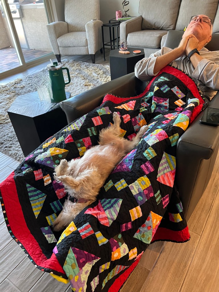 Charlie turns 2 years old on February 2nd.  We adopted him on September 18, 2023.  He was just 8 months old.  The vet told us it would take about 3 months before Charlie would trust we are his dog parents.  Today, Charlie’s favorite place to nap is on my lap when sitting in the recliner with my feet elevated.  He will also nap laying down on my legs with my feet as his pillow.  There are many times I wake up in the morning to realize a small 15 pound dog is laying right on top of my head on my pillow.