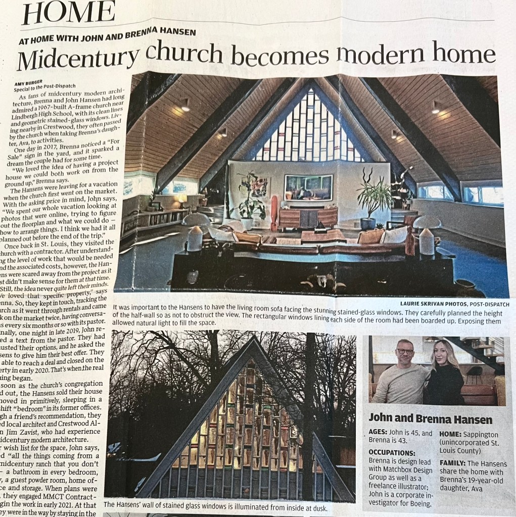 Last March a St. Louis area friend, who I grew up with and who I attended church with, sent me an article from the St. Louis Post-Dispatch newspaper.  It was an article about the church becoming a home.  Now I was really interested.